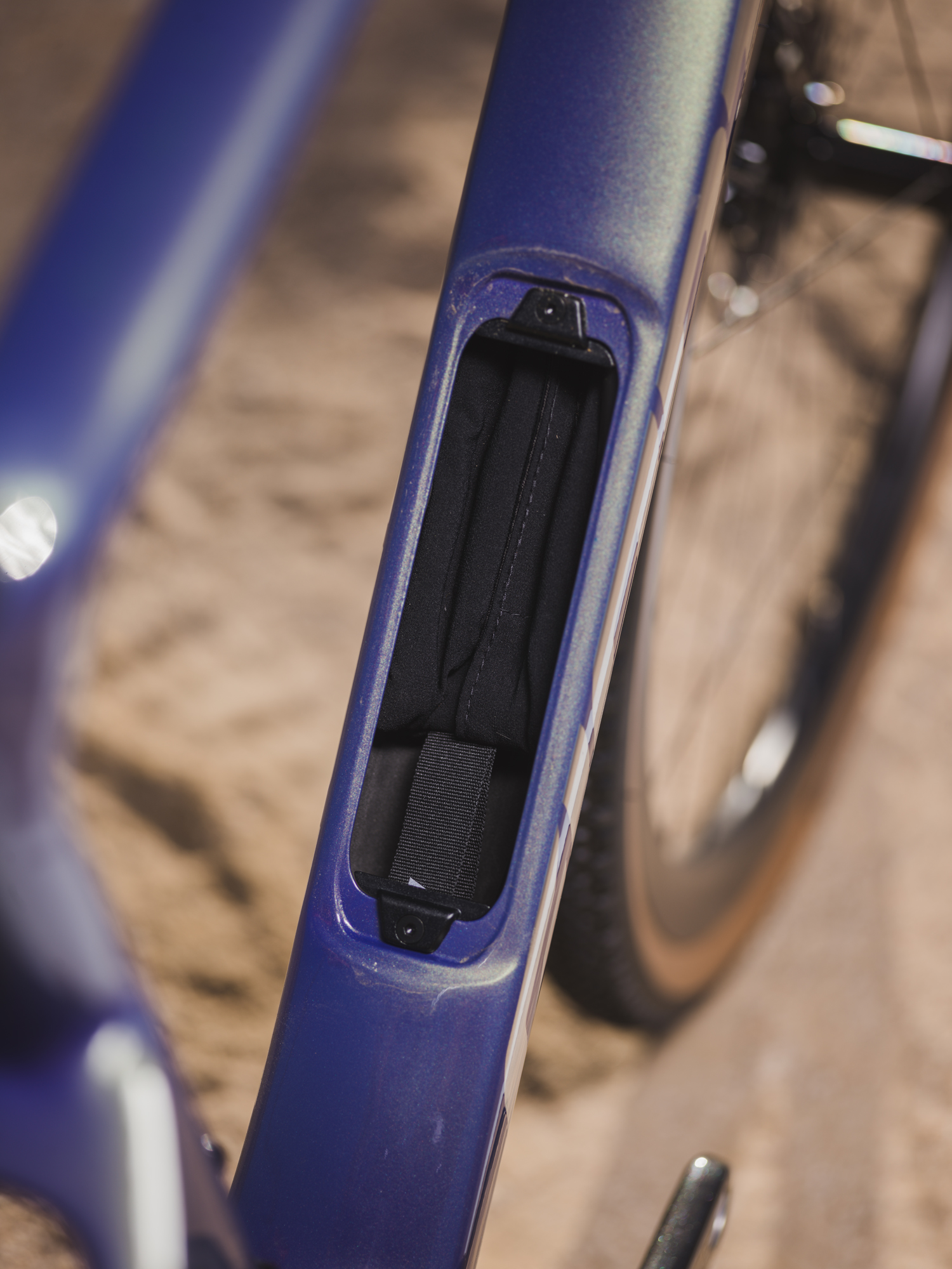 Le compartiment de rangement situé dans le tube diagonal, sous le porte-bidon, représente l'une des innovations les plus intelligentes du Revolt Advanced Pro 0.