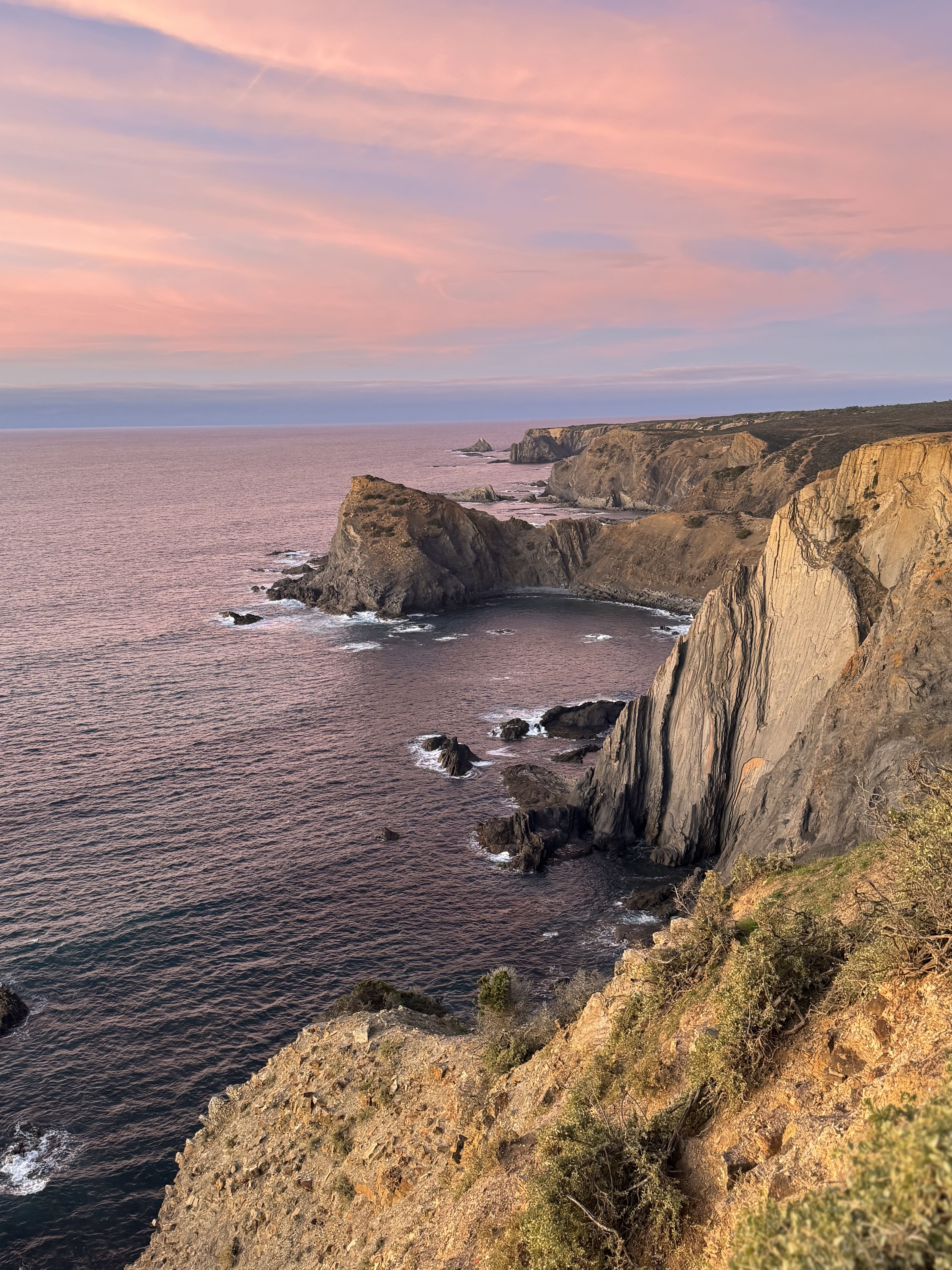 Passage par les spots de Monte Clérigo et Arrifana. Chemins forestiers puis piste panoramique au bord des falaises. Un des tronçons les plus spectaculaires. Coucher de soleil à couper le souffle. Pour bien gérer l'effort sur ces longues étapes, consultez nos conseils pour gérer une sortie longue distance.